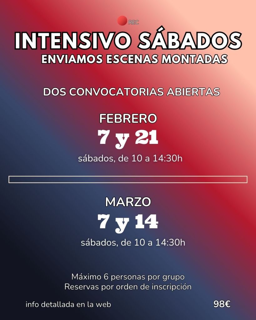 Taller intensivo de interpretación ante la cámara — Edición especial sábados